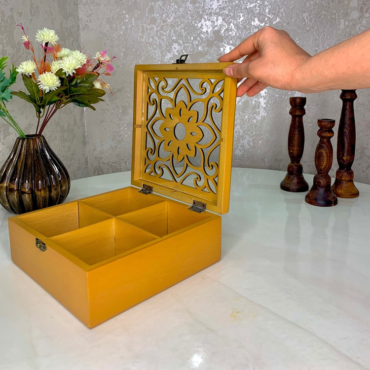 ### تیبگ و جعبه پذیرایی زیلان: هنر و کارایی در یک بسته 🪵✨ محصولی که در دست دارید، تیبگ و جعبه پذیرایی زیلان است که با طراحی برجسته و ظاهری شیک، به راحتی میتواند به یکی از زیباترین و کاربردیترین اقلام خانه شما تبدیل شود. این جعبه چوبی دستساز با ابعاد 20x20 سانتیمتر، به دلیل طراحی منحصر به فردش، نه تنها فضایی مناسب برای سرو انواع دمنوشها، شکلاتها و حتی لوازم آرایشی شما فراهم میکند، بلکه میتواند به عنوان یک هدیه خاص و ماندگار نیز مورد استفاده قرار گیرد. 🎁💝 این محصول با استفاده از ام دی اف با روکش طبیعی چوب راش گرجستانی ساخته شده است که به آن ظاهری گرم و دلنشین میبخشد. رنگ قهوهای عمیق این جعبه، همراه با جزئیات زرد رنگ در طراحی، جلوهای خاص و مدرن به آن بخشیده است. این ترکیب رنگی، نه تنها زیبایی را به فضای شما اضافه میکند، بلکه هارمونی خاصی با سایر دکوراسیونهای خانهتان خواهد داشت. 🌈 از دیگر ویژگیهای منحصر به فرد این جعبه، قابلیت تقسیمبندی آن است که به شما این امکان را میدهد تا به راحتی اقلام مختلف را درون آن قرار دهید و به سازماندهی فضای خود کمک کنید. به عنوان مثال، میتوانید دمنوشها را در یک بخش، شکلاتها را در بخش دیگر و لوازم آرایشیتان را در بخشی دیگر قرار دهید تا همیشه به راحتی در دسترس باشند. این جعبه، نه تنها یک ظرف سرو جذاب است، بلکه به عنوان یک عامل نظمدهنده نیز عمل میکند. 🗂️🍬 ما در زیلان به کیفیت و زیبایی اهمیت میدهیم و این محصول نمونهای از تعهد ما به ارائه بهترینها به شماست. انتخاب تیبگ و جعبه پذیرایی زیلان، نه تنها انتخابی زیبا برای خانهتان است، بلکه سرمایهگذاری بر روی یک اثر هنری است که هر بار که از آن استفاده میکنید، یادآور لحظات خاصی خواهد بود. پس فرصت را از دست ندهید و این جعبه شگفتانگیز را به مجموعه خود اضافه کنید! 🛍️🌟